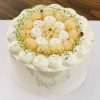 Cốt bánh bông lan bên trong ẩm xốp, tan ngay khi đưa vào miệng. Điểm nhấn là những quả nhãn tươi lột vỏ, căng mọng và ngọt thanh. Nhãn được xếp xen kẽ cùng những chóp kem nhỏ trông rất hài hòa.
